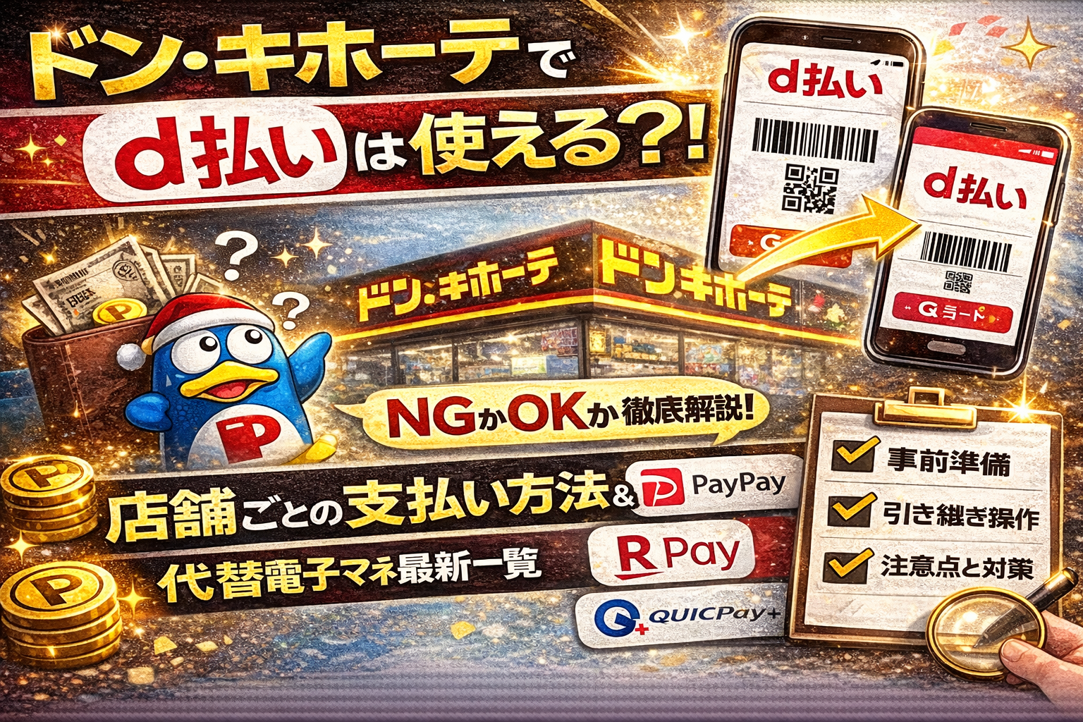ドンキホーテでは多様な支払い方法に対応していますが、「d払い」は利用できません。キャッシュレス決済が進む中、d払いを含むQRコード決済の可否や、代替できる電子マネー・クレジットカードの情報は非常に重要です。ここでは、最新の決済方法と対応状況をわかりやすく一覧で紹介し、d払いが使えない場合におすすめの代替手段や注意点を詳しく解説します。現金以外でのお得な買い物方法を知りたい方は必見です。