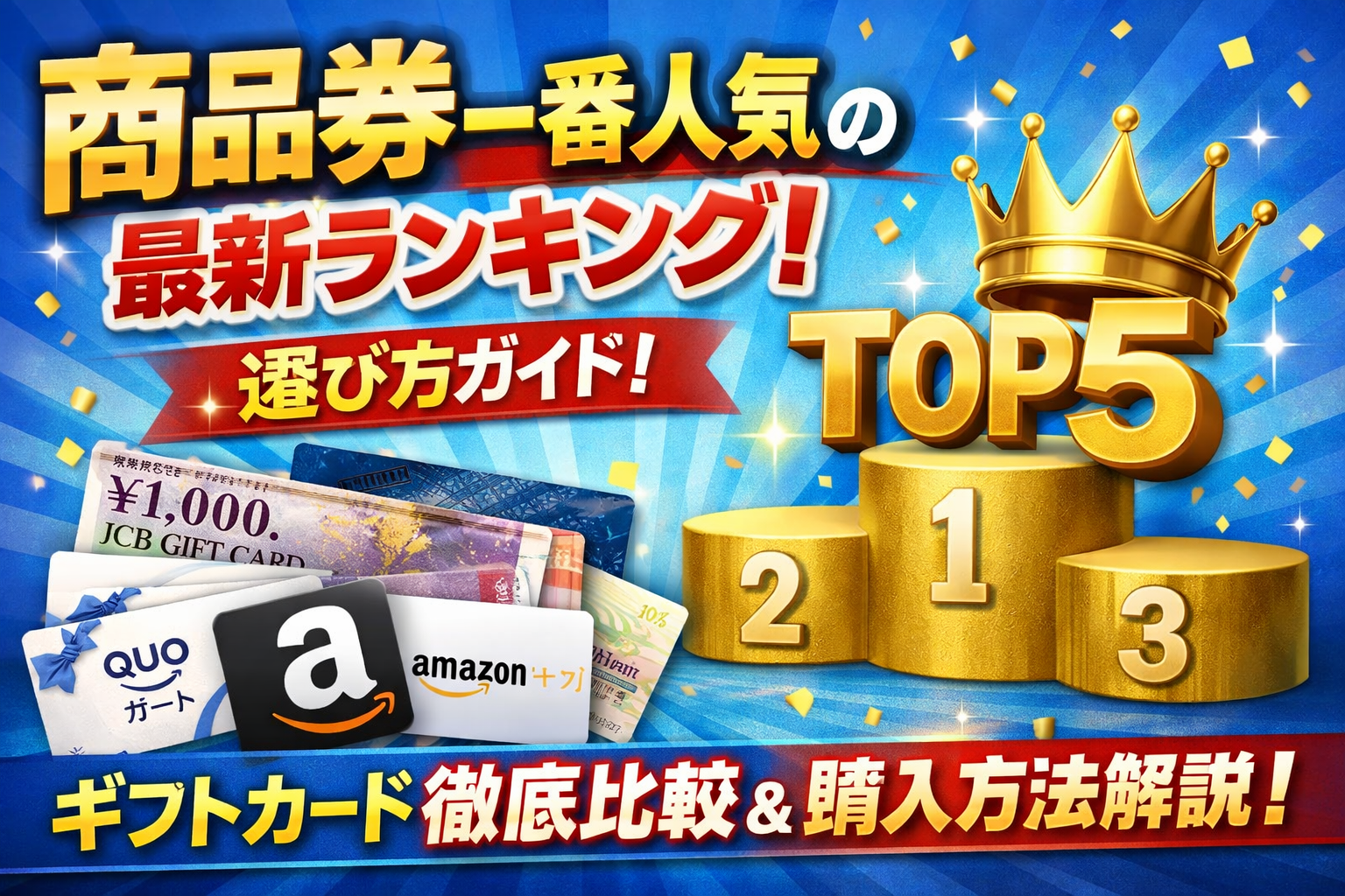 商品券の人気ランキング上位は、「JCBギフトカード」「Amazonギフトカード」「Visaギフトカード」「QUOカード」「全国百貨店共通商品券」です。それぞれの特徴と比較を以下のテーブルにまとめました。